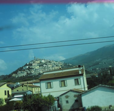Matahari sudah merah, awan lembayung menyapu langit cerah di atas menara-menara bangunan, ketika kami tiba di kota yang didirikan sekitar tahun 300 sebelum masehi itu. Kota tua, terkenal di seluruh dunia, kota kebanggaan orang Italia, kota istimewa karena telah melahirkan enam orang suci (Santo dan Santa), dengan Sto. Fransiskus Assisi dan Sta. Clara yang paling populer.