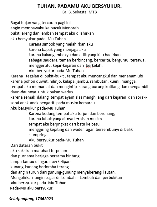 Penulis : Br. Bernardinus Sukasta, MTB